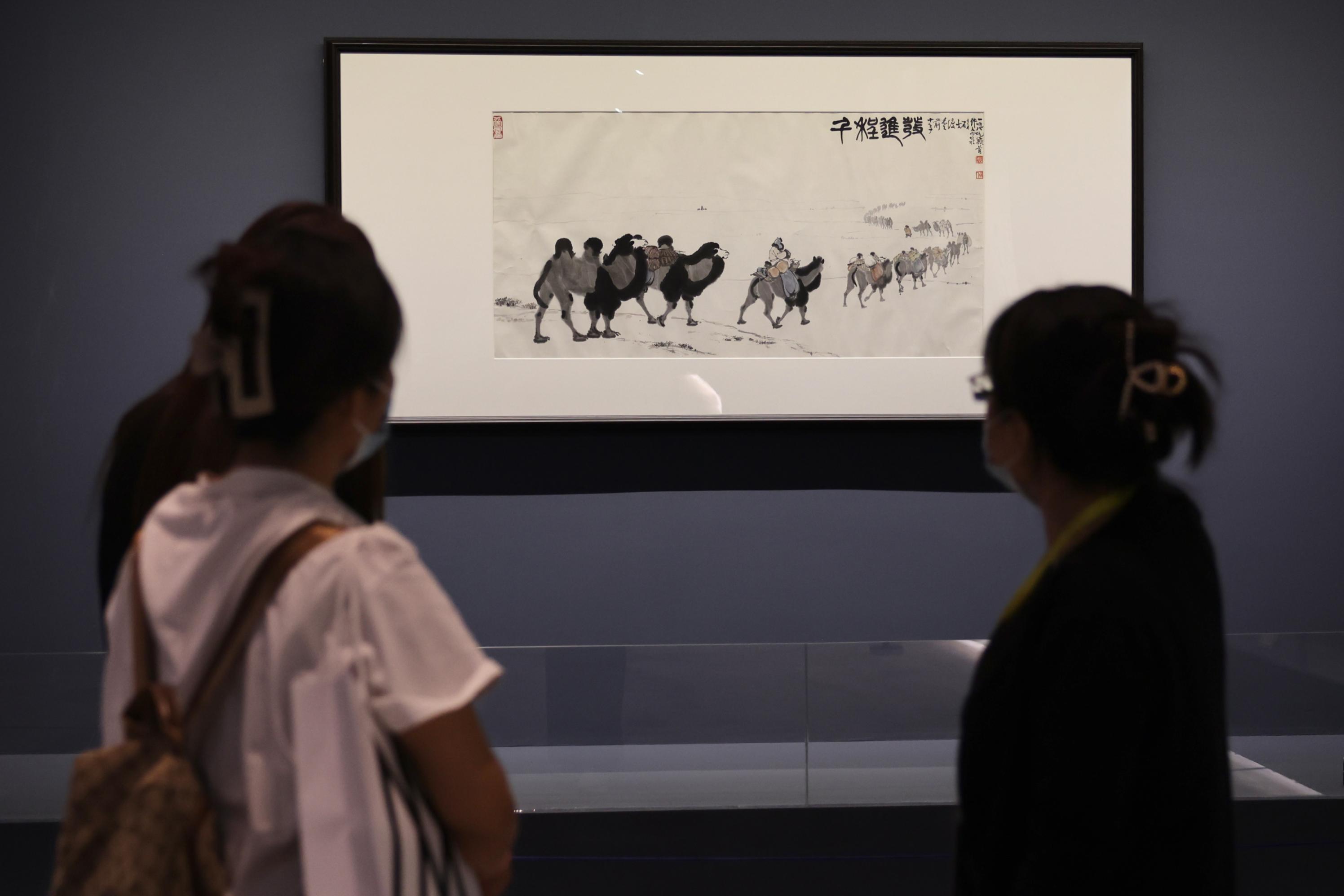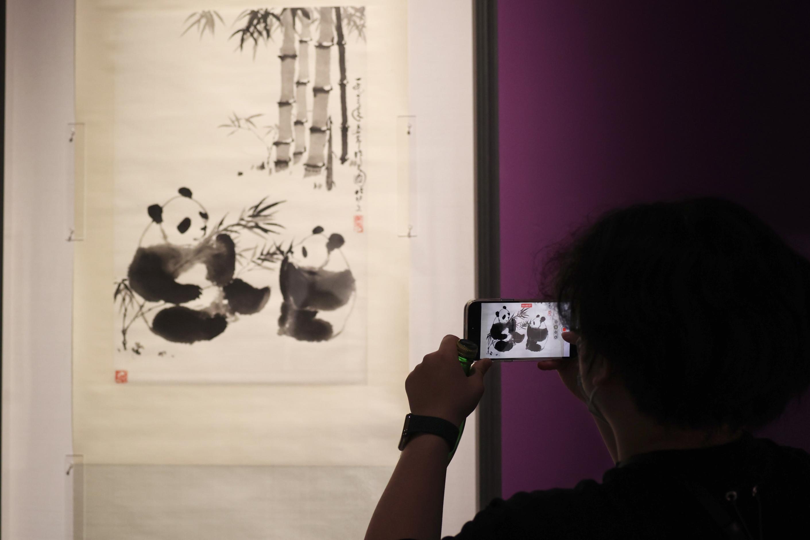 此次展覽匯集了中國國家圖書館、中國國家畫院、北京畫院、北京市文物交流中?、北京市徐悲鴻紀念館、湖南博物院、浙江省博物館、沈陽故宮博物院等幾十家機構(gòu)收藏的重要藏品,重點展出了齊白石《聚珍十開冊》《荔枝圖》,張大千《芳馨遠聞》《吹簫仕女圖》,徐悲鴻《少陵詩意圖》、傅抱石《金城圖》、黃賓虹《吳淞記游圖》、潘天壽《墨龍》、李可染《清漓風光》《無限風光在險峰》等眾多名家罕見真跡。這套“全明星陣容”難得一見,許多作品為首次公開展出。