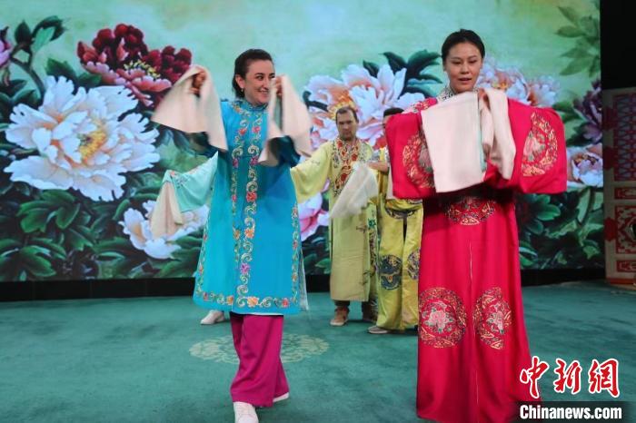 中亞媒體高層觀看了京劇表演,并與京劇演員互動(dòng)。陶拴科 攝