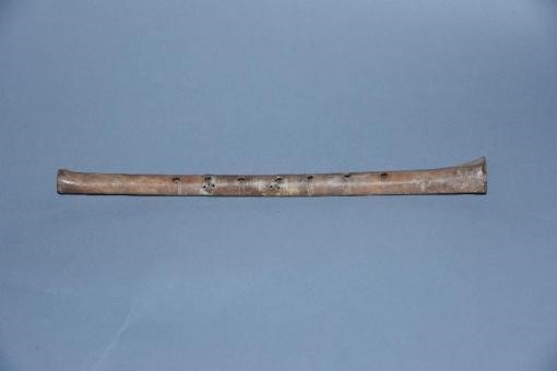 展覽中,一件出土于河南省漯河市舞陽(yáng)縣賈湖遺址的賈湖骨笛吸引了不少觀(guān)眾的目光。據(jù)介紹,骨笛以鶴類(lèi)動(dòng)物的尺骨鉆孔而成,是迄今為止我國(guó)發(fā)現(xiàn)最早、保存最完整的管樂(lè)器。