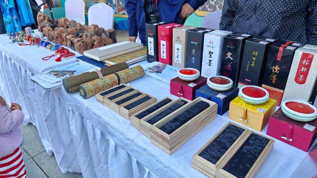 山東“秋季黃河大集”啟動現(xiàn)場,文創(chuàng)企業(yè)展示具有特色的文房用品。新華社記者蕭海川攝