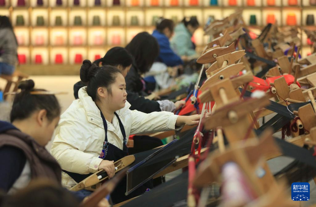 立冬過(guò)后,湖南省張家界市武陵源區(qū)非遺土家族織錦生產(chǎn)企業(yè)根據(jù)顧客訂單,制作圍巾、披肩、拖鞋、頭飾等冬季系列織錦產(chǎn)品,拓展線上線下銷售渠道,迎接冬天銷售旺季。新華社發(fā)(吳勇兵攝)