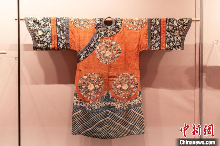 圖為清代緙絲紅地八團花卉紋吉服袍。受訪者供圖