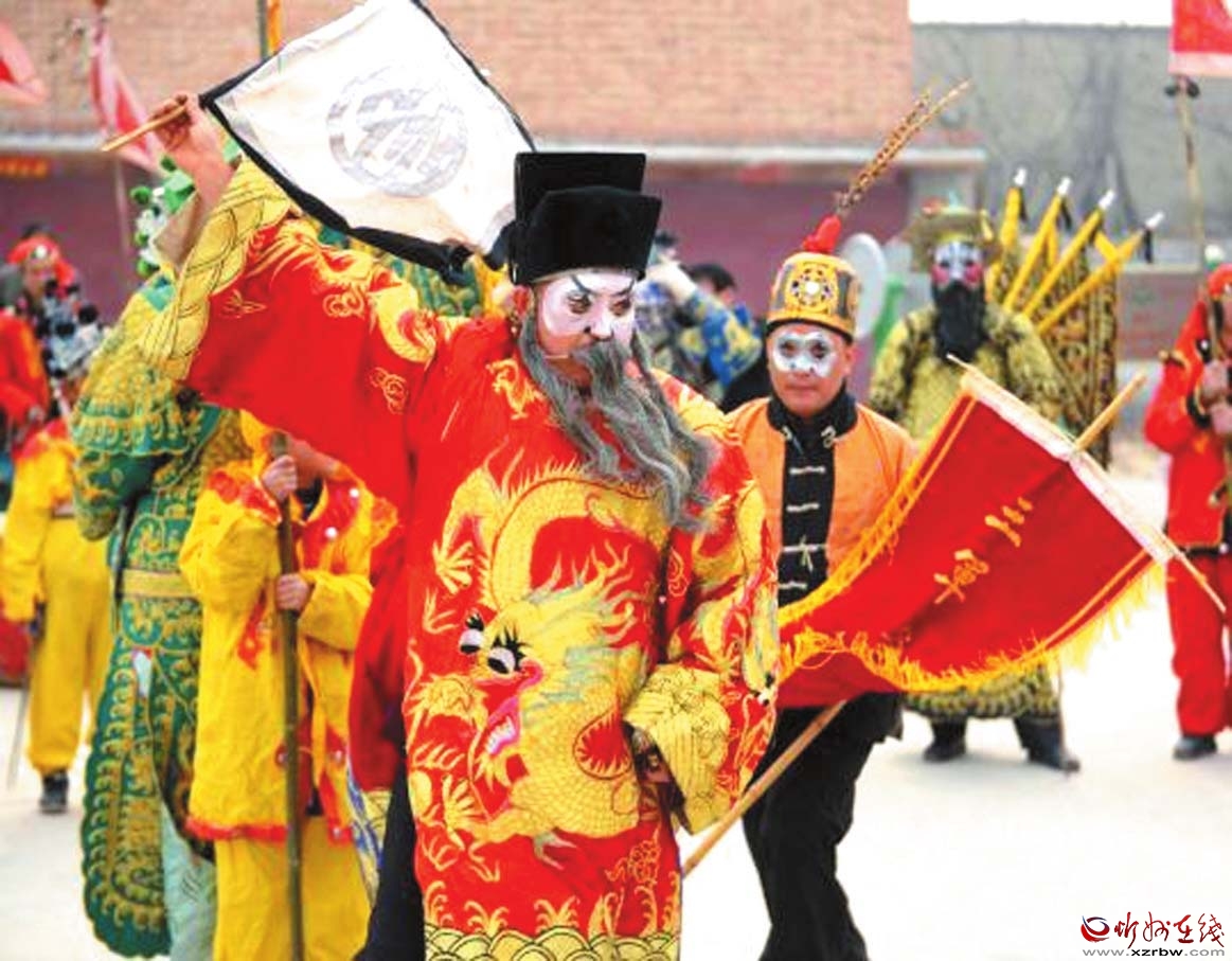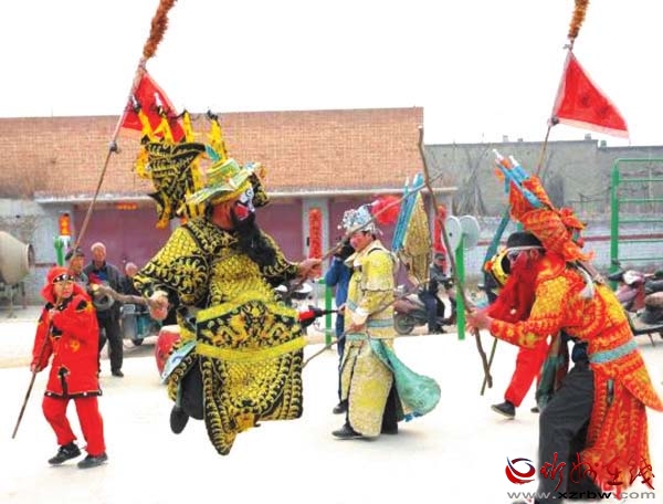 令人欣喜的是,今年的社火表演增加了很多新鮮血液,最小的表演者只有11歲。72歲的社火老藝人梁生偉是總教練,第十四代傳承人李軍平是演員兼教練。在他們帶領(lǐng)下,每一次演出從召集、化妝、著裝、配飾、道具,到列隊(duì)、祭旗、出征、行軍,以及演出中的傳丁、練兵、探馬、布陣、對(duì)壘、決戰(zhàn)、破陣等,每一個(gè)細(xì)節(jié)都有講究、說法和規(guī)矩。其行為規(guī)范貫穿著樸素的古代儒家哲學(xué)思想,其陣法擺出的是玄妙的古代軍事戰(zhàn)陣,如對(duì)打表演的是北宋楊繼業(yè)楊家軍的武術(shù)套路,鼓樂擊打出的是原始戰(zhàn)鼓石破天驚的鼓點(diǎn)風(fēng)格,給人以極大的歷史韻味和藝術(shù)享受。