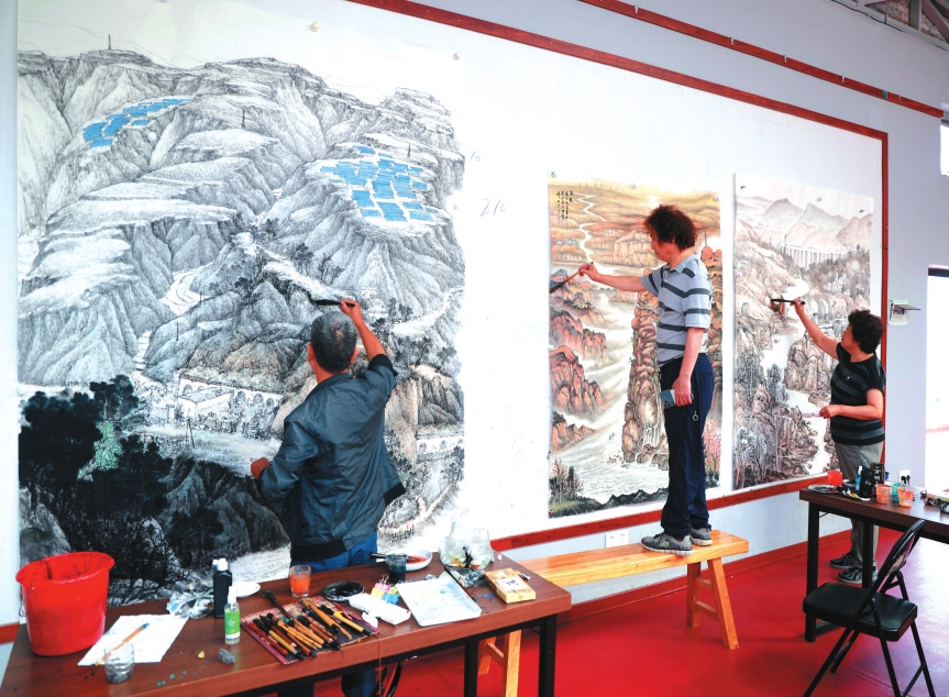 中國(guó)青綠山水畫(huà)院秘書(shū)長(zhǎng)金石已是二度造訪:“每次感受都不同,黃土高原總能滋養(yǎng)心靈,激發(fā)無(wú)盡創(chuàng)作靈感?!贝诵兴で閾]毫,創(chuàng)作了《雪域高原》《春曉趙家溝》《翠綠趙家溝》三幅作品,并已將“金秋趙家溝”主題納入明年的創(chuàng)作藍(lán)圖。