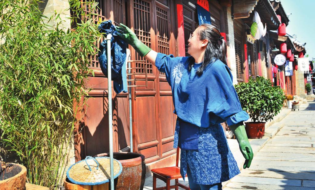 趙慧說,古城文創(chuàng)街的店鋪給了手工藝人更多的可能性和幸福感。以前大多是因為熱愛,自己四處找了染材做著玩,身邊的朋友們口口相傳,遇見喜歡的就收走,現(xiàn)在有了古城的平臺,更多的人認識了草木染,更多喜歡傳統(tǒng)文化、講究生活品質(zhì)的朋友們愛上了這樣的作品。趙慧守著小店,染染布、縫縫包、種種花、喝喝茶,把自己的熱愛和鉆研一顏一色染進布里,一針一線縫到作品中。通過那些有趣和有創(chuàng)意的作品,她覺得生活更加溫馨了。