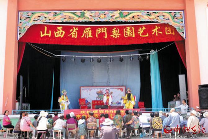 本報(bào)訊 薪火相傳梨園情,送戲下鄉(xiāng)頌黨恩。7月3日上午10時(shí)許,代縣峨口鎮(zhèn)上木角村委會(huì)大院的“瑞祥舞臺(tái)”上,鑼鼓鏗鏘,喧樂(lè)縈耳,熱鬧非凡,代縣雁門梨園藝術(shù)團(tuán)(原代縣峨口退休老干部戲迷樂(lè)開(kāi)心藝術(shù)團(tuán))正在這里演出,與該村黨員干部群眾共慶黨的99周年華誕,歌頌黨的恩情。演職人員以群眾喜聞樂(lè)見(jiàn)的形式,抒發(fā)老干部愛(ài)黨、愛(ài)國(guó),永遠(yuǎn)跟黨走的豪情壯志。