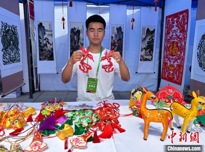 7月14日,甘肅省慶城職業(yè)中等專業(yè)學校學生張巖展示其剪紙作品。中新社記者 丁思 攝 一張紅紙、一把剪刀,兩只栩栩如生的鳳凰在張巖手中翻飛。17歲的他是甘肅省慶城職業(yè)中等專業(yè)學校學生,自幼喜好剪紙,入校后參加學校選修課,是班里為數(shù)不多的男生。 “老師會系統(tǒng)講授剪紙技巧,各類圖形線條的把控,以及西方建筑風格樣式等等,通過專業(yè)學習,讓我更加細心認真?!睆垘r14日接受中新社記者采訪說,“我很喜歡中國傳統(tǒng)文化,希望通過剪紙的方式來創(chuàng)新表達?!?/p> 此次參賽,張巖和老師路彥玲5天剪出了一件紅色長裙,由老師穿在身上展示?!?0后”路彥玲是慶陽剪紙縣級代表性傳承人,任職美術教師的她,在學校開設了個人剪紙工作室,帶領學生探索將傳統(tǒng)文化與現(xiàn)代時尚融合,讓非遺走入現(xiàn)代生活。