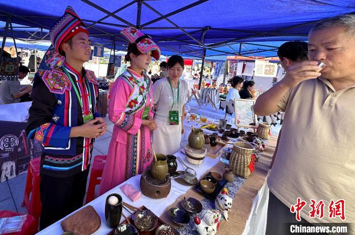 7月14日,酒泉職業(yè)技術學院學生王皓向觀眾介紹敦煌文創(chuàng)作品。中新社記者 丁思 攝 “我們喜歡潮流的新事物,也喜歡古老的優(yōu)秀傳統(tǒng)文化,敦煌文化是我最感興趣的?!?9歲的王皓是酒泉職業(yè)技術學院研學旅行管理與服務專業(yè)的學生,他告訴記者,要成為優(yōu)秀的研學導師,豐富的歷史理論和動手實踐能力必不可少,參加學校的非遺課堂,讓他收獲了這兩方面的知識。 王皓的導師是酒泉職業(yè)技術學院教授王權朝,他是甘肅省級非遺項目“敦煌石粉彩繪技藝”傳承人,依托敦煌剪紙、陶瓷釉下彩繪等非遺技藝,進行非遺創(chuàng)新設計,文創(chuàng)產(chǎn)品有茶具、團扇、背包、抱枕等。 王權朝的課還受到該校留學生歡迎,他收了不少“洋弟子”,為他們講述敦煌壁畫藝術相關課程,并進行敦煌壁畫白描、泥板畫等實操訓練。他告訴記者,今年他還開啟線上教學,錄制課程《敦煌壁畫藝術》,以通俗易懂的講解語言,直觀的圖片和操作視頻,讓海外觀眾不僅可以學習中文,還可以近距離感受敦煌藝術。