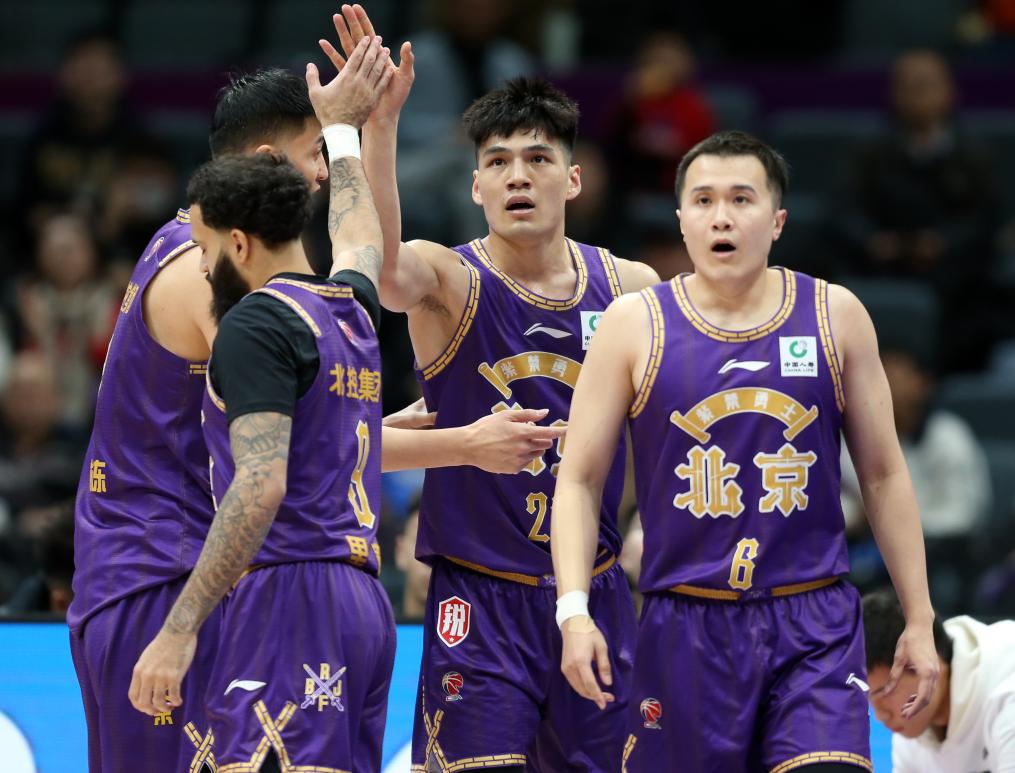 12月27日,北控隊球員陳國豪(右二)進球后和隊友慶祝。新華社記者 雒圓 攝
