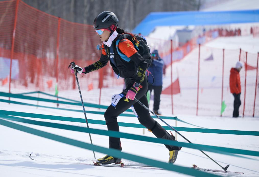 圖為索朗曲珍在哈爾濱亞冬會滑雪登山比賽中。新華社記者 胡虎虎 攝