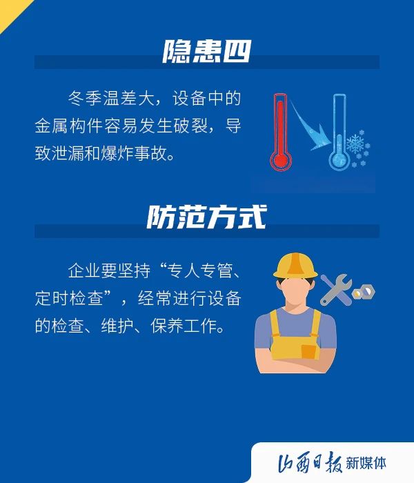 進(jìn)入冬季,氣溫下降,晝夜溫差大,冷暖變化不規(guī)律,一些事故發(fā)生概率會(huì)因?yàn)榧竟?jié)性因素而升高,影響企業(yè)的安全生產(chǎn),下面這些隱患需注意。