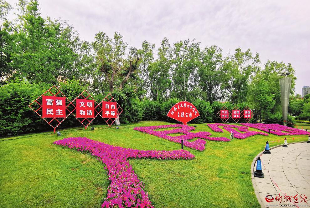 志愿者為過(guò)往群眾發(fā)放創(chuàng)文宣傳資料 本報(bào)通訊員 攝