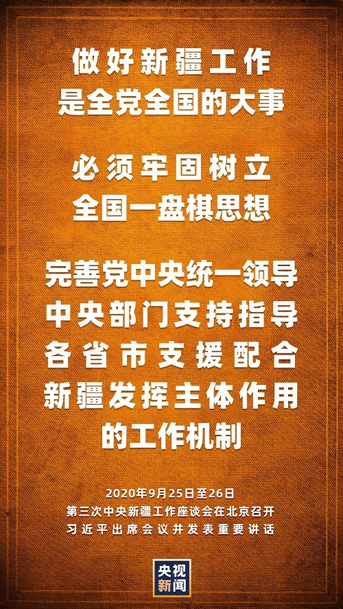 第三次中央新疆工作座談會(huì)9月25日至26日在北京召開。中共中央總書記、國(guó)家主席、中央軍委主席習(xí)近平出席會(huì)議并發(fā)表重要講話。