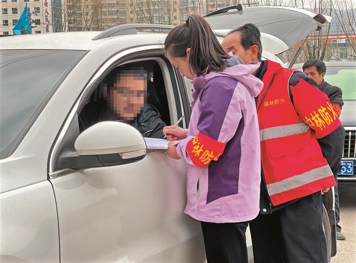 圖為鳳凰鎮(zhèn)朱家?guī)r村護林防火卡口,護林員正在登記進山人員信息。