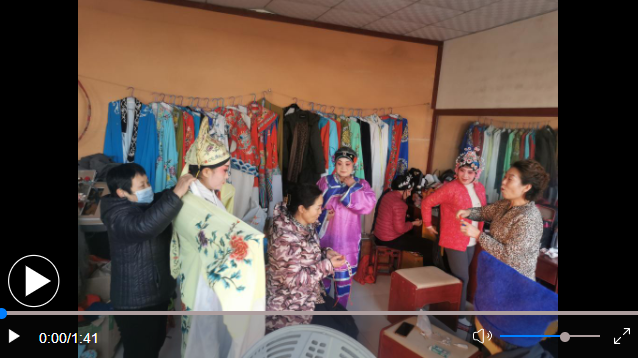 戴上胡子、穿上狀元袍、蹬上靴子、圍上披風(fēng)……山東省濟(jì)南市章丘區(qū)文祖街道青野村戲臺旁邊的化裝間里,村民們正在化裝。過一會兒,她們將會變成老生、花旦,為十里八村的村民們奉獻(xiàn)一場五音戲表演。