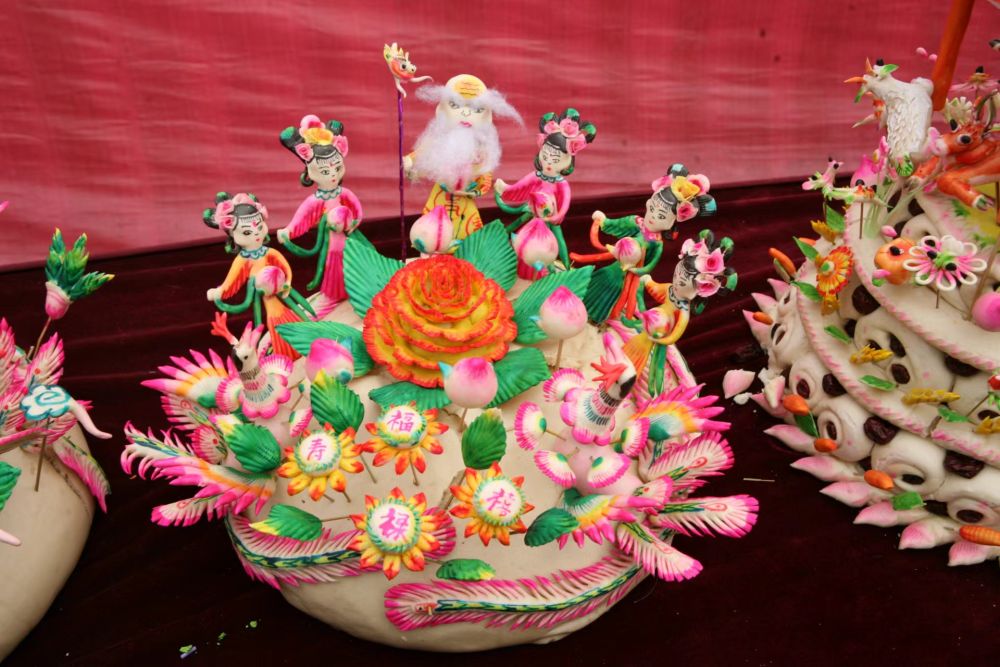 地處運城盆地北端的聞喜縣氣候溫和、四季分明,適宜小麥生長。純白而筋道的小麥粉,是蒸制花饃的上好原料。千百年來,聞喜人每日三餐以饃為主,蒸饃和制作花饃也逐漸演變?yōu)楫數(shù)氐膫鹘y(tǒng)。