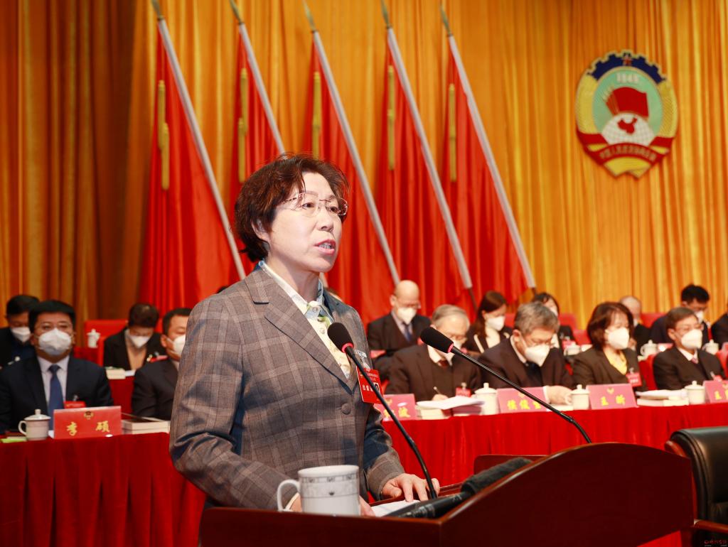 王海英向大會(huì)作提案工作情況報(bào)告。張存良 攝