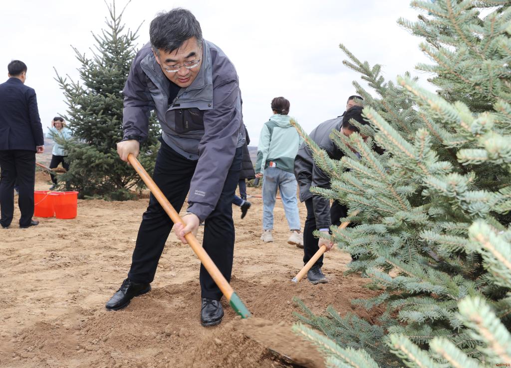 朱曉東指出,國(guó)土綠化,功在當(dāng)代、利在千秋。開(kāi)展大規(guī)模國(guó)土綠化行動(dòng),是貫徹落實(shí)習(xí)近平生態(tài)文明思想的重要實(shí)踐,是忻州牢記領(lǐng)袖囑托、保護(hù)黃河安瀾、筑牢環(huán)京津冀生態(tài)屏障的重要抓手。全市上下要把抓好生態(tài)文明建設(shè)作為堅(jiān)決捍衛(wèi)“兩個(gè)確立”的具體行動(dòng),增強(qiáng)“四個(gè)意識(shí)”、堅(jiān)定“四個(gè)自信”、做到“兩個(gè)維護(hù)”,站在筑牢國(guó)家生態(tài)安全屏障的戰(zhàn)略高度,站在實(shí)現(xiàn)忻州高質(zhì)量永續(xù)發(fā)展的高度,深刻認(rèn)識(shí)開(kāi)展國(guó)土綠化行動(dòng)和全民義務(wù)植樹(shù)的極端重要性,堅(jiān)決落實(shí)好市委、市政府的部署安排。朱曉東說(shuō),忻州作為黃河入晉第一市,作為汾河、桑干河、滹沱河“三河之源”,作為華北平原西部生態(tài)屏障,扛牢生態(tài)建設(shè)使命,必須謀在先干得實(shí)。要牢固樹(shù)立生態(tài)文明觀,準(zhǔn)確把握生態(tài)與經(jīng)濟(jì)、生態(tài)與社會(huì)、全局與局部、當(dāng)前與長(zhǎng)遠(yuǎn)的關(guān)系,嚴(yán)格落實(shí)忻州“兩屏三區(qū)三帶”建設(shè)規(guī)劃,統(tǒng)籌山水林田湖草沙綜合治理,精準(zhǔn)謀劃、精細(xì)布局,堅(jiān)持造管并重、造改并行、造封結(jié)合,確保在遵循規(guī)律的基礎(chǔ)上因地制宜,不斷擴(kuò)大林地面積,不斷提高森林質(zhì)量,持續(xù)提升生態(tài)系統(tǒng)穩(wěn)定性,努力探索出務(wù)實(shí)管用的忻州綠化路徑。要圍繞國(guó)家重點(diǎn)區(qū)域重大生態(tài)修復(fù)和保護(hù)工程“雙重”項(xiàng)目、省級(jí)黃河流域生態(tài)防護(hù)林屏障、環(huán)京津冀生態(tài)安全屏障等造林綠化重點(diǎn)工程,積極爭(zhēng)取更多項(xiàng)目落地忻州。偏關(guān)、河曲、保德、五寨4縣要統(tǒng)籌造林綠化和荒漠化治理,科學(xué)精準(zhǔn)推進(jìn)人造林、退化林修復(fù)、100個(gè)重點(diǎn)村莊高標(biāo)準(zhǔn)綠化美化等項(xiàng)目實(shí)施,著力打造集晉西北整流域綜合治理、片帶狀生態(tài)防護(hù)、節(jié)點(diǎn)景觀綠化為一體的荒漠化典型示范工程,為黃河流域生態(tài)保護(hù)修復(fù)提供可復(fù)制可借鑒的經(jīng)驗(yàn)。要深化全民履“植”,繼續(xù)深化全民植樹(shù)成效,創(chuàng)新義務(wù)植樹(shù)形式,提高公民義務(wù)植樹(shù)參與率,讓愛(ài)綠植綠護(hù)綠成為群眾的自覺(jué)追求,讓綠水青山成為忻州的“幸??可健薄R晟乒茏o(hù)體系,把營(yíng)造林?jǐn)?shù)量、質(zhì)量“雙增”的目標(biāo)擺在首位,創(chuàng)新管護(hù)方式,全面落實(shí)林長(zhǎng)制,做好森林防火工作,加大對(duì)亂砍濫伐、非法開(kāi)墾等破壞造林綠化成果違法行為的處置力度,真正管在實(shí)處、管在關(guān)鍵。朱曉東強(qiáng)調(diào),做好國(guó)土綠化工作關(guān)鍵在落實(shí)。市發(fā)改、財(cái)政、自然資源(林業(yè))、住建、交通運(yùn)輸、農(nóng)業(yè)、水利等主要職能部門,要各司其職、密切配合,協(xié)同推進(jìn)城市、礦山、道路、村鎮(zhèn)、水域、山地等國(guó)土綠化工作。各縣(市、區(qū))一把手要親自抓、重點(diǎn)抓、具體抓,樹(shù)立正確的政績(jī)觀,主政一方、造福一方,為當(dāng)?shù)刈訉O后代建好水庫(kù)、錢庫(kù)、糧庫(kù)、碳庫(kù)。要開(kāi)展身邊增綠、城鄉(xiāng)增景行動(dòng),既增大“綠”,也抓小“綠”、微“綠”,既造底色,也造景色、美色,真正把國(guó)土綠化同高質(zhì)量發(fā)展大局結(jié)合起來(lái),為美麗忻州、品質(zhì)忻州、幸福忻州貢獻(xiàn)更多力量。