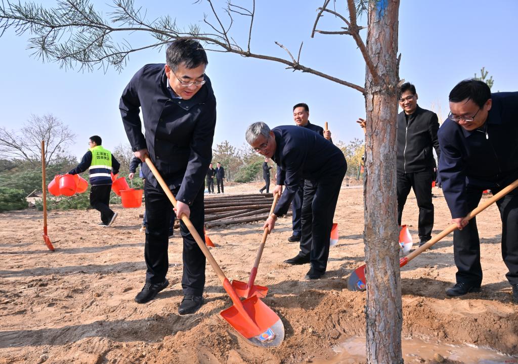 當日上午,朱曉東一行抵達牧馬河生態(tài)公園植樹點,首先聽取忻府區(qū)牧馬河生態(tài)公園項目總體規(guī)劃情況匯報,詳細了解牧馬河流域生態(tài)修復(fù)工程項目進展情況。隨后,大家拿起鐵鍬、水桶等工具,走向植樹地點,分工協(xié)作、配合默契,鏟土、移苗、扶苗、澆水、踩實……植樹現(xiàn)場繁忙而有序,一派熱火朝天景象。春風(fēng)過處,一株株新栽種的苗木錯落有致、迎風(fēng)挺立,萌發(fā)著無限生機和希望。