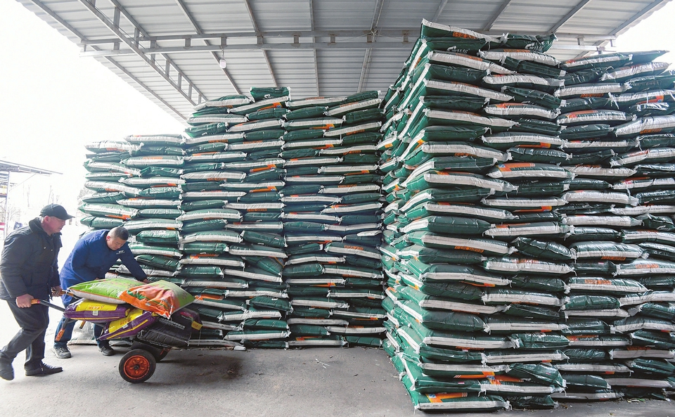 2月24日,長子縣清風(fēng)農(nóng)資連鎖有限責(zé)任公司院內(nèi),工人在搬運化肥。隨著春耕生產(chǎn)臨近,該公司開通綠色通道,24小時不間斷作業(yè),加快化肥裝卸、轉(zhuǎn)運,全力保障春耕備耕。梁棟攝