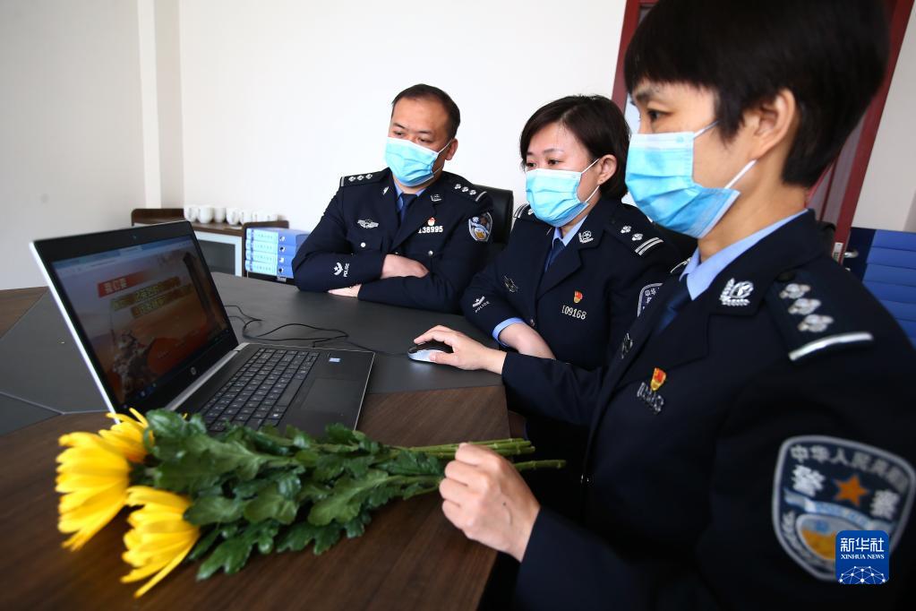 4月4日,山東省濟(jì)南市公安局市中區(qū)分局桿石橋派出所組織民警開展網(wǎng)上祭奠英烈活動(dòng)。