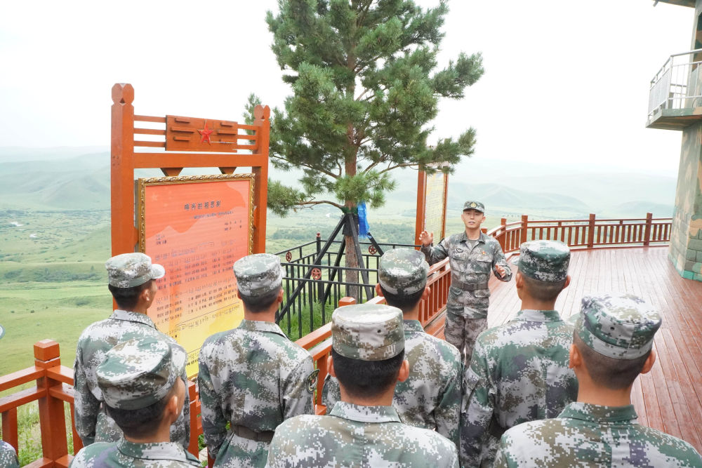 2021年8月9日,陸軍某旅三角山邊防連官兵在“相思樹”下學(xué)習(xí)李相恩的英雄事跡。新華社發(fā)(孫路 攝)