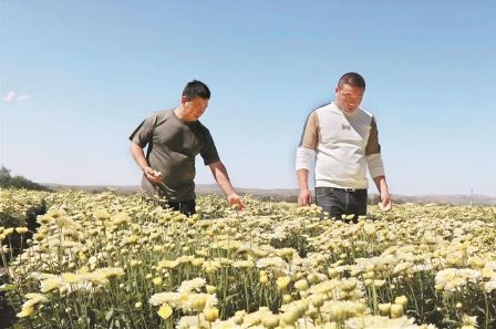 有了方向,行動(dòng)是關(guān)鍵。黨員徐大衛(wèi)主動(dòng)請(qǐng)纓,第一時(shí)間不遠(yuǎn)千里趕赴菊花主產(chǎn)區(qū)射陽(yáng)考察菊花種植項(xiàng)目,經(jīng)過充分分析研判,篩選適宜五寨種植的品種,最終選定北京菊試種。同時(shí),他帶著誠(chéng)意誠(chéng)心,從射陽(yáng)請(qǐng)來3名技術(shù)專家。在晉西北中藥材產(chǎn)業(yè)孵化園附近,他與3位專家同吃同住,深入田間地頭,與群眾同勞作、共生活。依據(jù)菊花種植要求,手把手教會(huì)群眾平整土地、開挖溝槽、栽種澆水、鋤草施肥和采挖收儲(chǔ)等中藥材精耕細(xì)作技術(shù)。針對(duì)菊花農(nóng)殘、重金屬超標(biāo)的問題,在試種過程中,他精心研究、反復(fù)摸索,大膽探索出了一套適用于菊花的種植技術(shù),實(shí)現(xiàn)了菊花農(nóng)殘可控的突破,先試種的100畝菊花,獲得了成功。