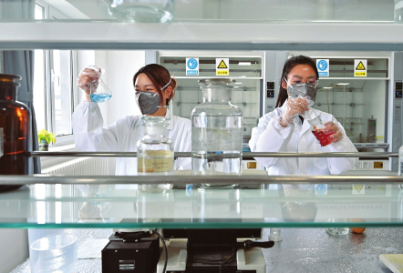 檢測(cè)中心職工正在進(jìn)行試樣檢測(cè)。