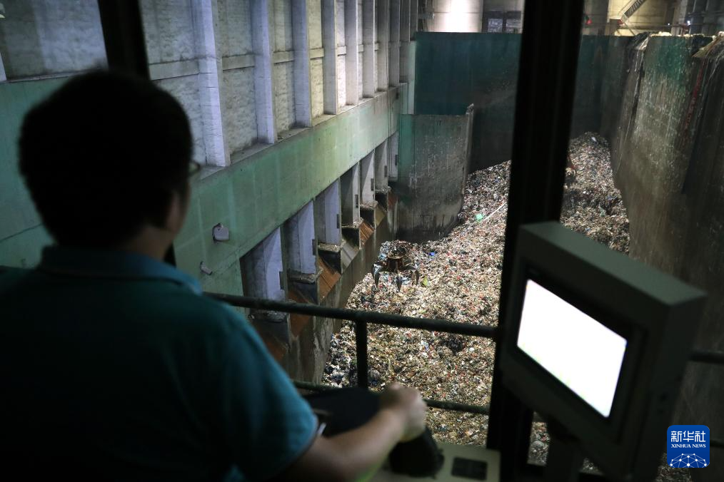 6月29日,在江西南昌固廢處理循環(huán)經(jīng)濟(jì)產(chǎn)業(yè)園,生活垃圾焚燒發(fā)電項(xiàng)目的工作人員通過(guò)操控垃圾吊移動(dòng)垃圾。新華社記者 杜瀟逸 攝