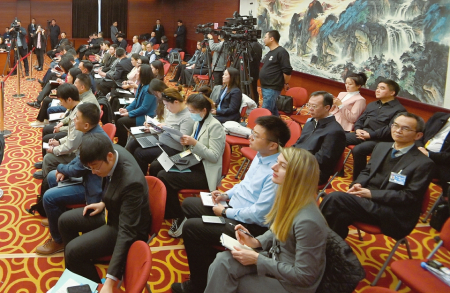 記者爭(zhēng)相提問(wèn)。本報(bào)記者李聯(lián)軍 史曉波攝