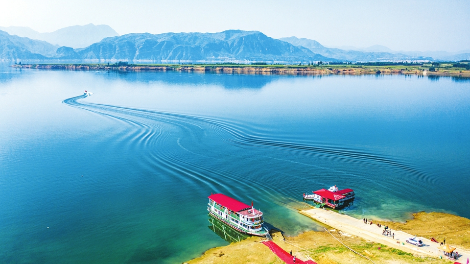 5月5日,在垣曲縣古城國(guó)家濕地公園內(nèi),游客或乘游輪、或乘快艇,游覽濕地如詩(shī)如畫(huà)美景,樂(lè)享假日。近年來(lái),隨著當(dāng)?shù)丶哟鬂竦亻_(kāi)發(fā)與保護(hù)力度,黃河濕地生態(tài)環(huán)境得以明顯改善,生態(tài)文明建設(shè)成果更好地惠及人民。