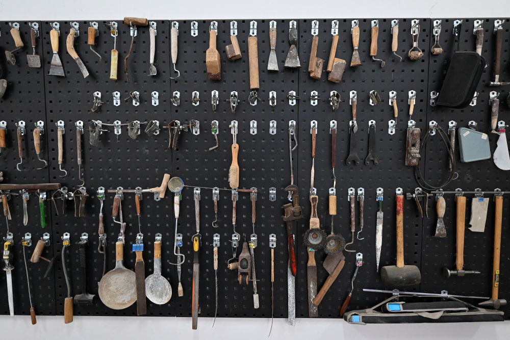 云岡研究院可移動文物修復室墻上用于修復文物的工具(2024年2月26日攝)。