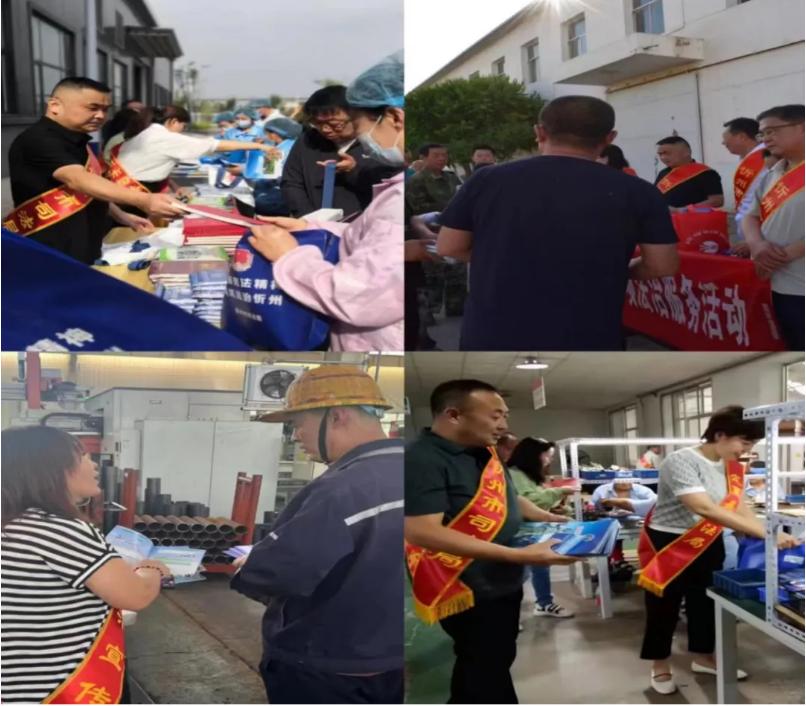 法律服務(wù)團(tuán)向企業(yè)管理人員及職工發(fā)放《憲法》500本、《民法典》以及《民法典進(jìn)企業(yè)》10000本、《合同法》5000本、《山西省優(yōu)化營(yíng)商環(huán)境條例》4000本、以及《行政復(fù)議法》400本和其他法律法規(guī)書(shū)籍;發(fā)放公證證明材料清單1000本、100份便民聯(lián)系卡和法律政策明白卡,毛巾300份、圍裙300份、水杯300個(gè)、筆記本300本、雨傘100把等法治宣傳用品。同時(shí),講解法律案例,宣講涉企公證、鑒定和仲裁知識(shí),將法治宣傳與企業(yè)日常生產(chǎn)、經(jīng)營(yíng)管理以及員工生活聯(lián)系起來(lái),為企業(yè)發(fā)展?fàn)I造良好法治環(huán)境。