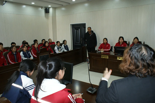 在干警的指導(dǎo)下,同學(xué)們模擬庭審現(xiàn)場(chǎng),從審判長(zhǎng)、審判員到公訴人、辯護(hù)人、被告人等,大家紛紛扮演起了不同的角色。