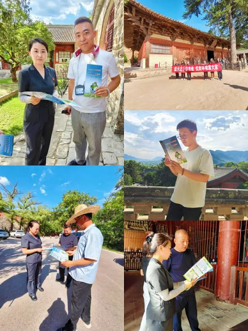 活動現(xiàn)場,法官干警向佛光寺工作人員及在場導游宣講了生態(tài)環(huán)境保護、文物古建保護的重要意義,倡導大家自覺遵守并積極推廣相關(guān)政策和法律法規(guī),耐心解答了現(xiàn)場游客提出的各類生態(tài)環(huán)境保護問題。同時,向游客普及文物保護相關(guān)法律法規(guī),鼓勵大家積極投身生態(tài)環(huán)境保護與文物保護工作,共同守護綠水青山,守護好文物古建。