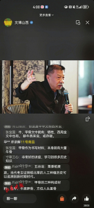從山西古代壁畫隱藏的密碼、傳統(tǒng)壁畫艷麗制作工藝的挖掘研究,現(xiàn)場觀眾聽得津津有味、頻頻點頭,直播間網(wǎng)友更是踴躍留言、頻繁互動,網(wǎng)友@寸草三心留言:“非常好的講座,學習到很多歷史知識”;還有網(wǎng)友留言探討山西古代壁畫的重要價值。直播收尾前,如何更好地保護山西低等級壁畫?介子平老師表示,文物不分“高低”,每個人審美不一樣,無論是低等級別還是其他級別,山西古代壁畫都值得大家去保護、去珍藏、去解讀;史宏蕾教授也呼吁,大家一定要關(guān)注那些散落在鄉(xiāng)間田野里的低等級壁畫,低等級壁畫中也有極其重要的價值。