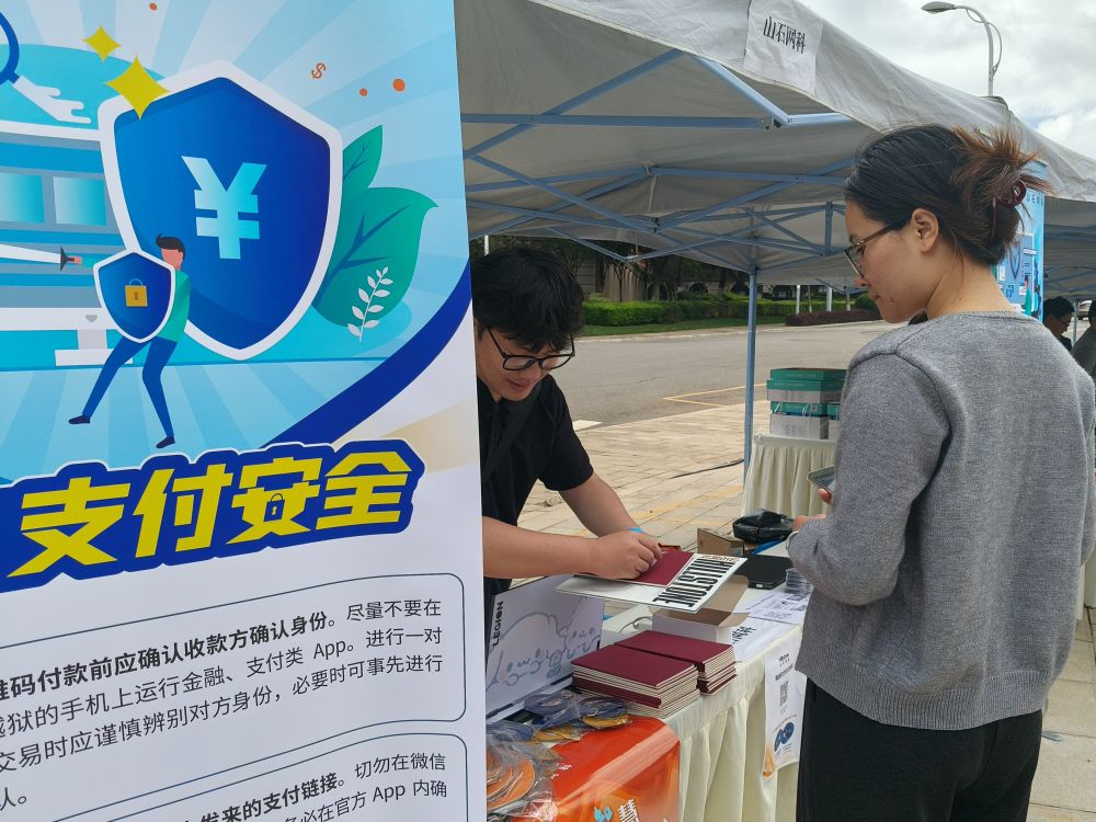 校園的露天廣場上還安排有網絡安全知識趣味問答活動,吸引學生參與,讓他們在輕松愉快的氛圍中鞏固了反詐知識。還有工作人員向路過的學生發(fā)放反詐宣傳手冊。